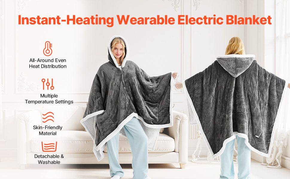 - Practical & Versatile Use: Our wearable electric blanket has an extended power cord and detachable controller for machine washing. Ideal for home use, like TV time, naps, or office warmth. With its stylish design, it is a thoughtful and practical present