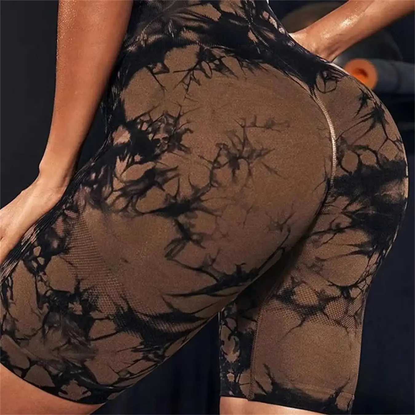 Women'S Yoga Shorts Tie Dye Peach Butt Nylon Quick Dry Fitness Pants High Stretch Hip Lift Sweatpants Tight Leggings